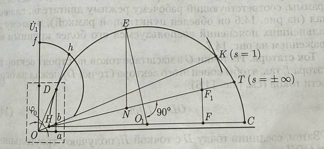 Қуат коэффициенті. Қуат коэффициентін анықтау үшін ордината осіне еркін диаметрі Oƒ жартылай шеңбер сызылады (14.6-суретті қараңыз). Ағымдағы шеңбердің берілген D нүктесі үшін cosφ= Oh/ Oƒ. Есептеуді жеңілдету үшін әдетте Oƒ = 100 мм алынады. Бұл жағдайда cosφ = Oh/100.